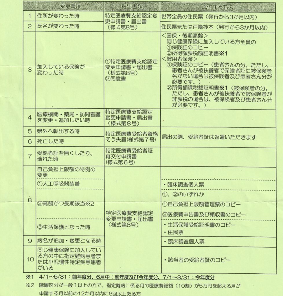 住所や氏名、加入保険などが受給者証を申請した時と変更が生じた場合、その都度書類の提出が必要となります。
